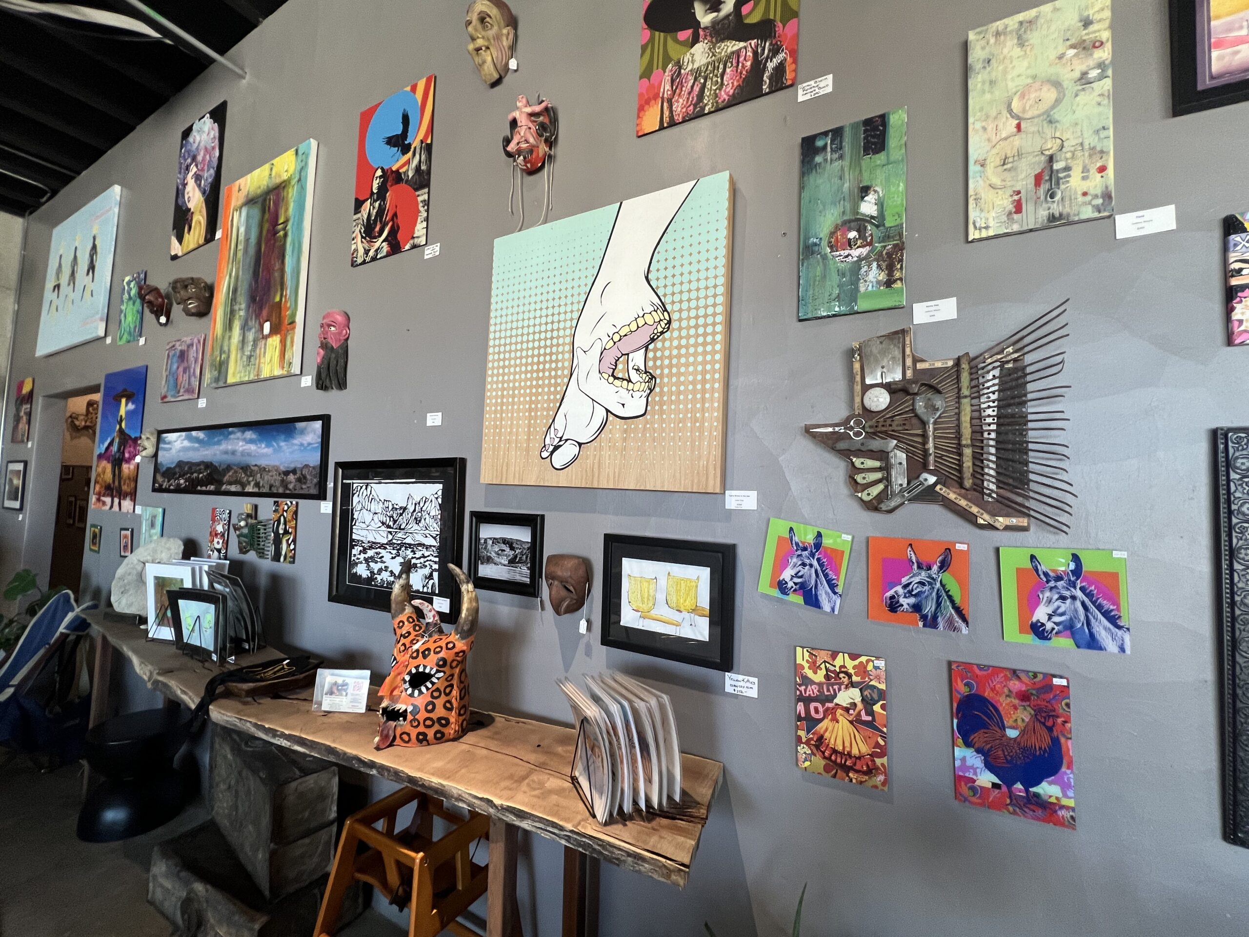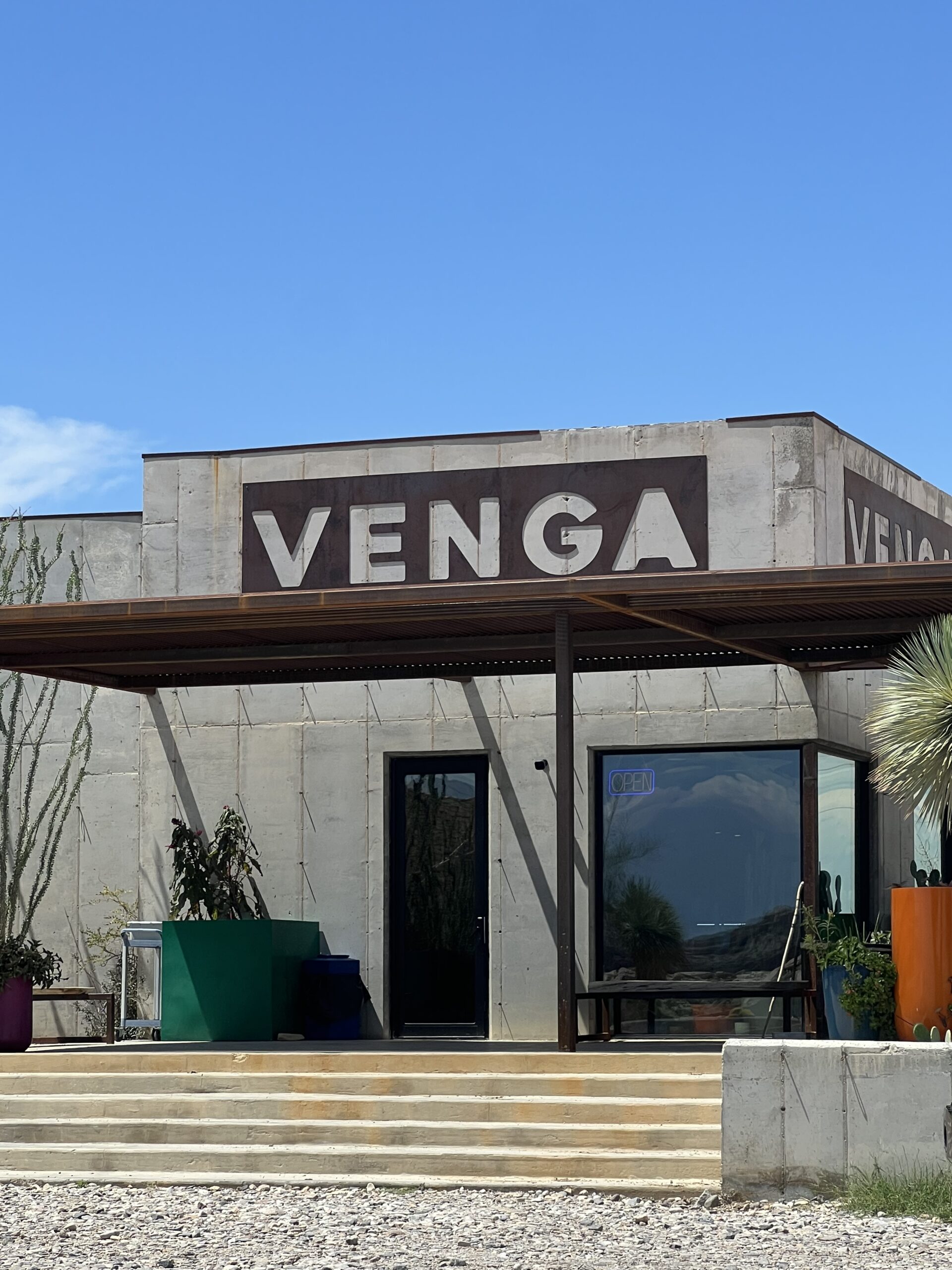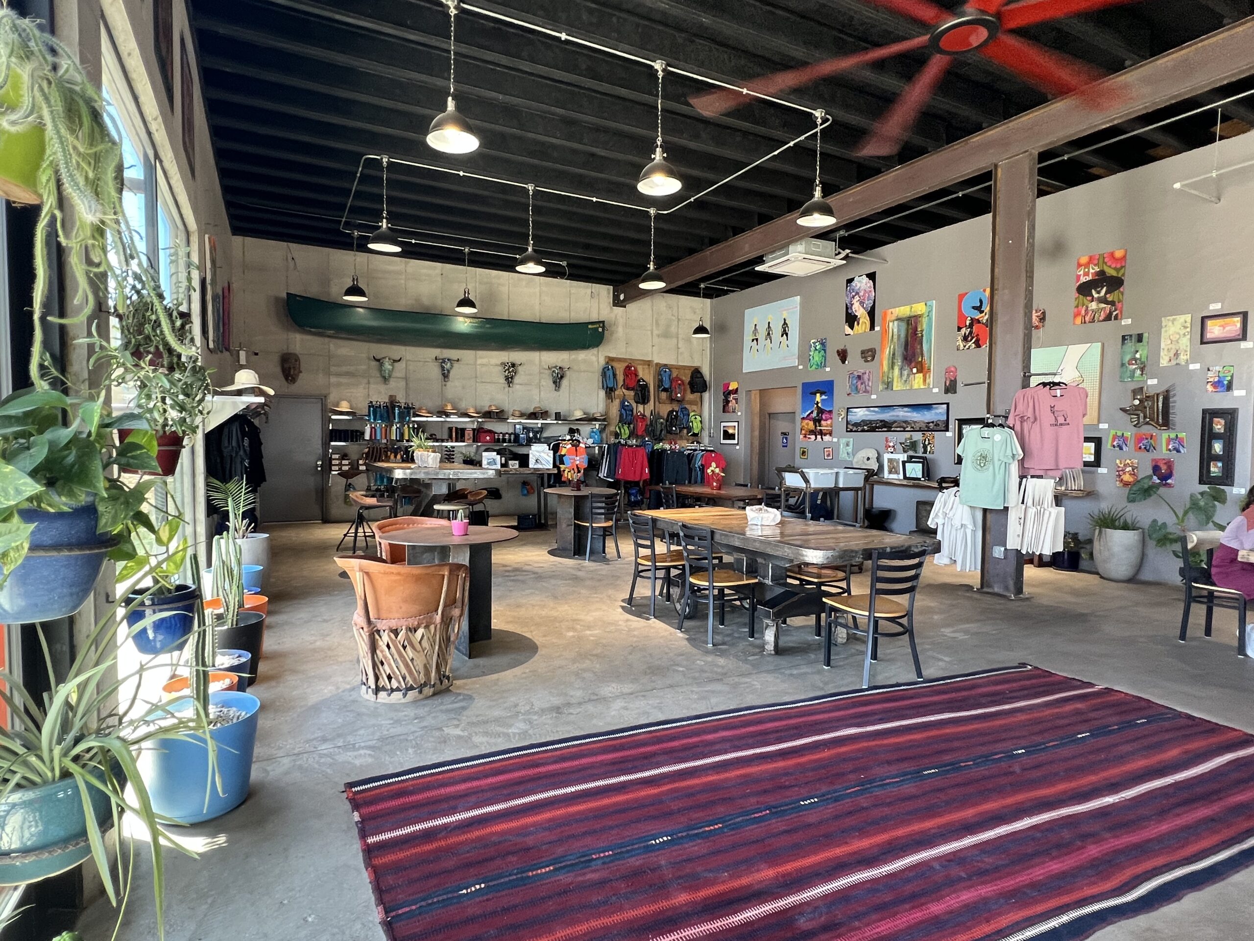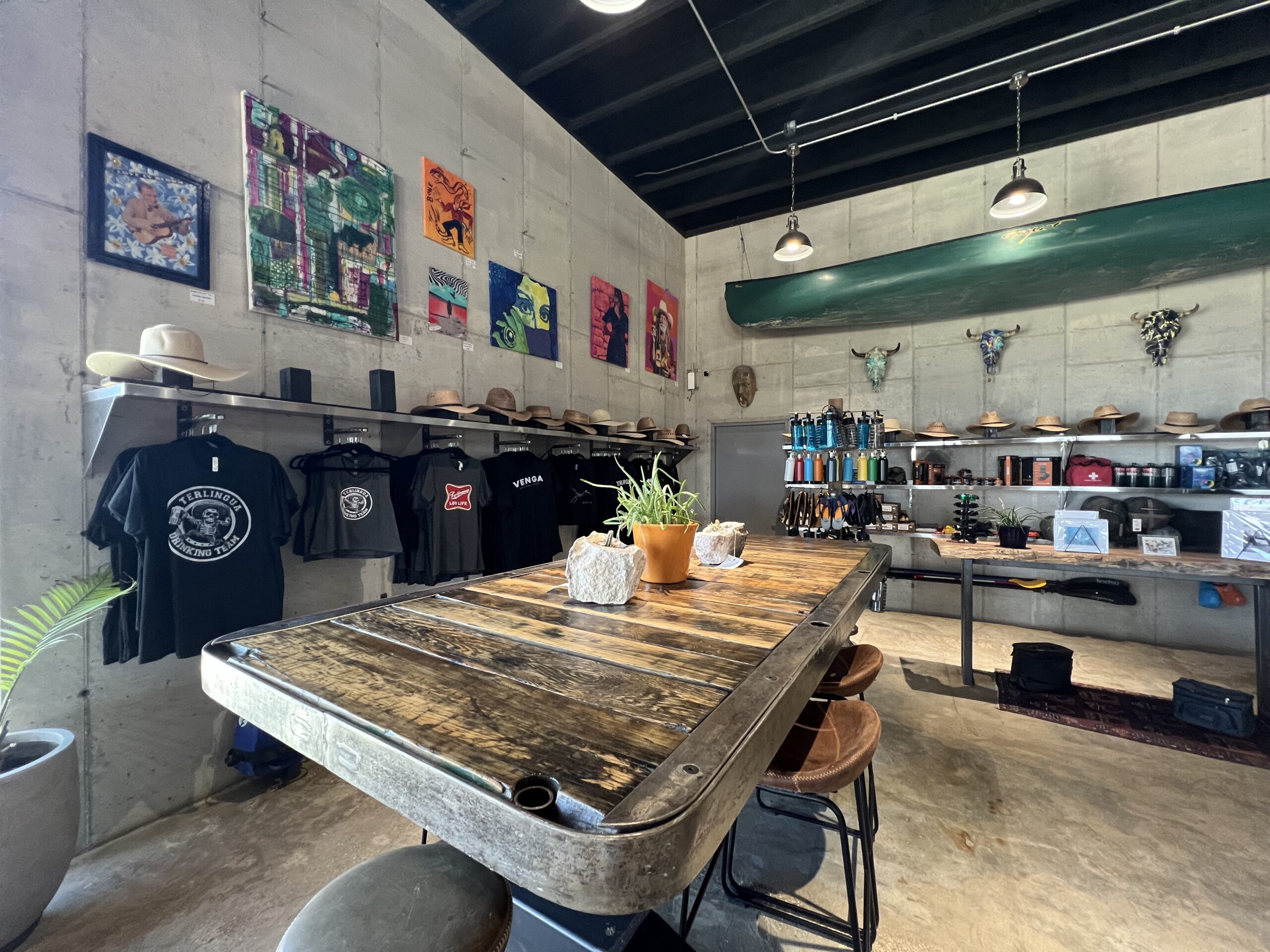 Para quem já visitou muitas lojas, nota-se claramente a curadoria dos elementos expostos, inclusive na escolha do mix de produtos. O Venga Café oferece uma seleção precisa de mochilas, chapéus, garrafas, coletes, óculos escuros e outros acessórios para quem quer curtir a vida ao ar livre no deserto de Chihuahuan.